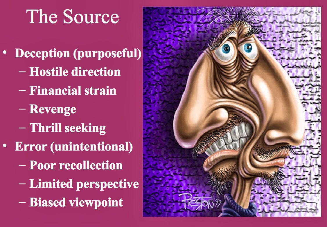 Fortunately, there has been some great work done on source analysis for Human Intelligence (HUMINT) that I believe can be applied to Cyber intelligence and OSINT in general. It's a paper written by Pat Noble, an FBI intel analyst who did his Masters work at Mercyhurst University's Institute for Intelligence Studies: “Diagnosing Distortion In Source Reporting: Lessons For HUMINT Reliability From Other Fields”